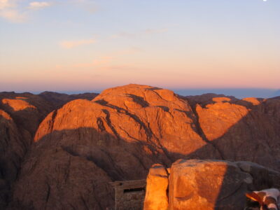 Die derzeitige Zeitqualität erinnert mich an jene Wanderung, welche ich schon mehrmals unternehmen durfte. Sie begann im St. Katharinenkloster in Ägypten, am Fusse des Berges Sinai. Jener berühmte Berg, an dem Gott sich Mose offenbarte. Tief ergriffen und erleuchtet vom Angesicht Gottes kehrte Mose nach 40 Tagen auf dem Berg mit den 10 (An-)Geboten Gottes für die Menschheit zurück. Was Mose am Fusse des Berges antraf war eine aufgebrachte Menschengruppe, die sich vom Glauben abwendeten.